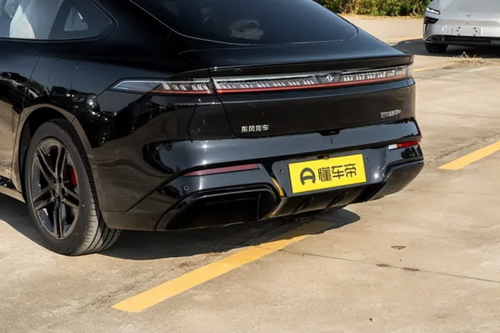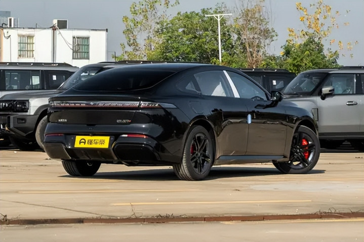 车尾部分延续了简洁而不失科技感的设计思路。贯穿式尾灯采用多点阵LED结构,点亮后层次丰富,辨识度较高。灯带横向拉伸视觉宽度,使整车尾部看起来更加稳重。值得一提的是,eπ007配备了电动升降扰流板,这一设计不仅在视觉上增强运动氛围,同时在高速行驶时也能提供一定的下压力,有助于提升稳定性。