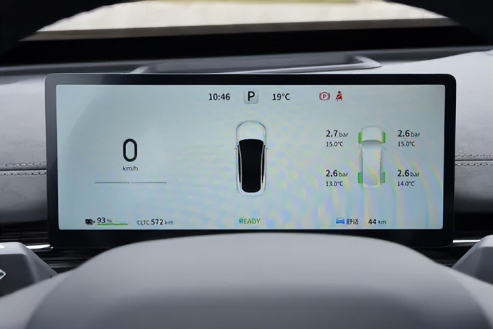 进入车内,eπ007的内饰呈现出典型的智能座舱风格。整体布局以简洁为主,中控区域没有过多复杂的物理按键,大部分功能集成在屏幕之中,使视觉更加清爽。车内核心的配置是一块15.6英寸2.5K高清中控屏,显示细腻,界面布局清晰,日常操作流畅度较高。与之搭配的是10.25英寸全液晶仪表,负责基础驾驶信息的呈现,信息读取直观,不会造成干扰。除此之外,还配备了10.9英寸HUD抬头显示系统,可以将车速、导航信息等投射在驾驶员视野前方,有效减少低头操作,提高行车安全性。